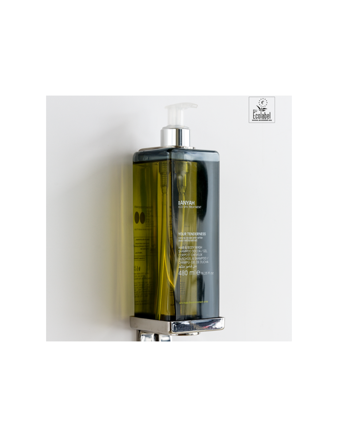 Asimismo, el packaging en formato de frasco cuadrado de esta gama es, ideal para combinar con el soporte y utilizar como dispenser. Este detalle convierte a los productos de la gama Anyah en versátiles y adaptables a cualquier tipo de ambiente u hotel.