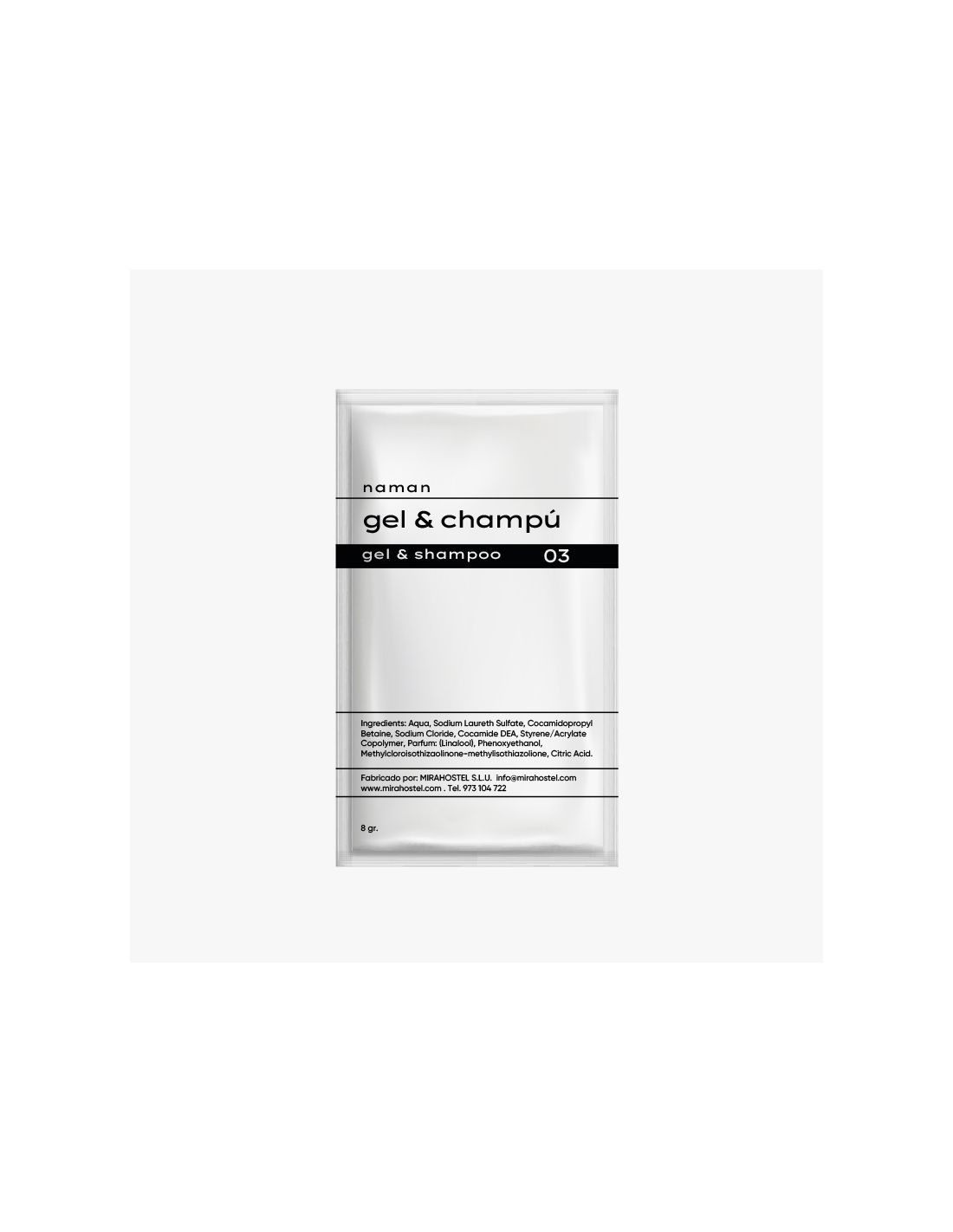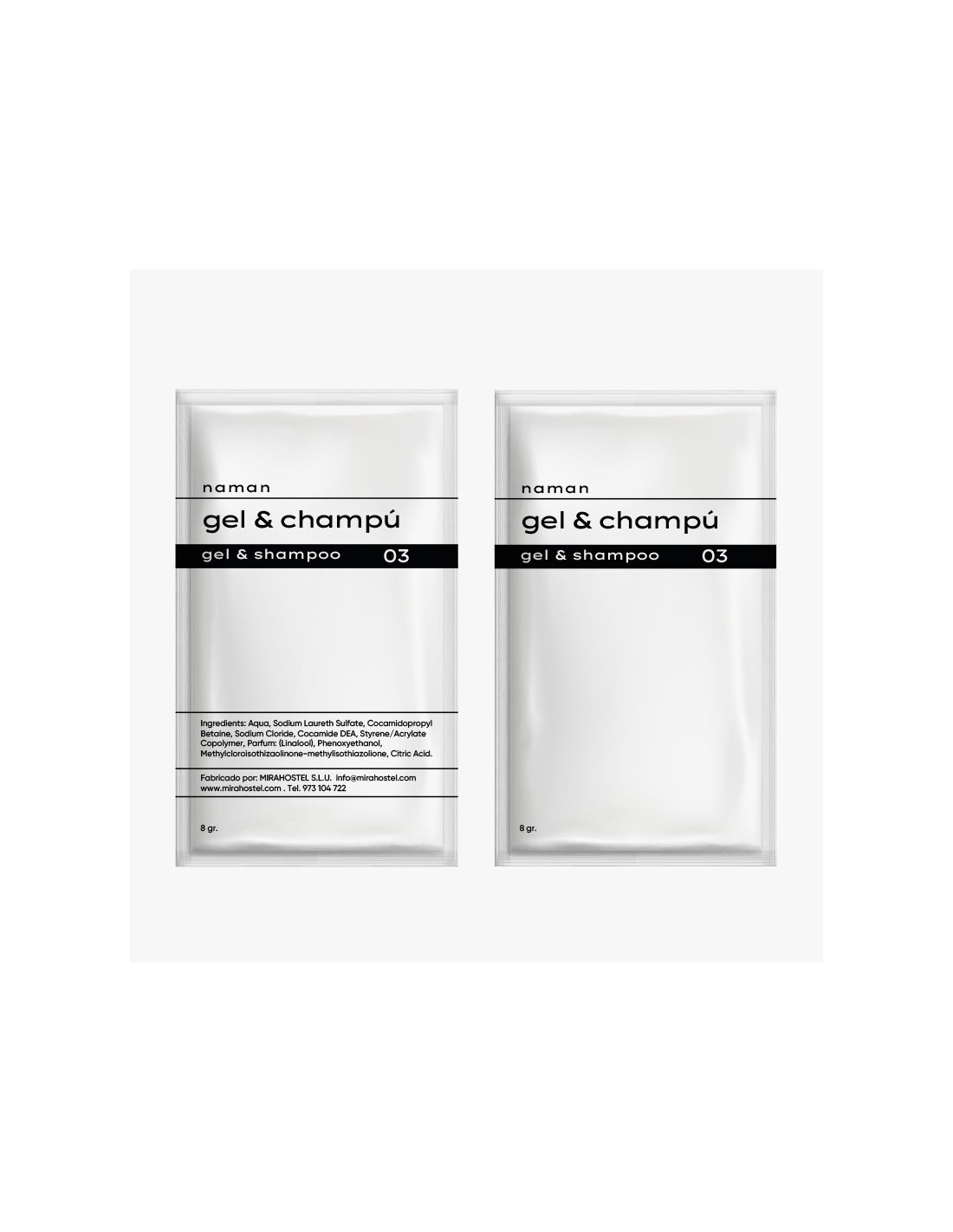 SOBRE GEL + CHAMPÚ NAMAN – AMENITIES MIRAHOSTEL