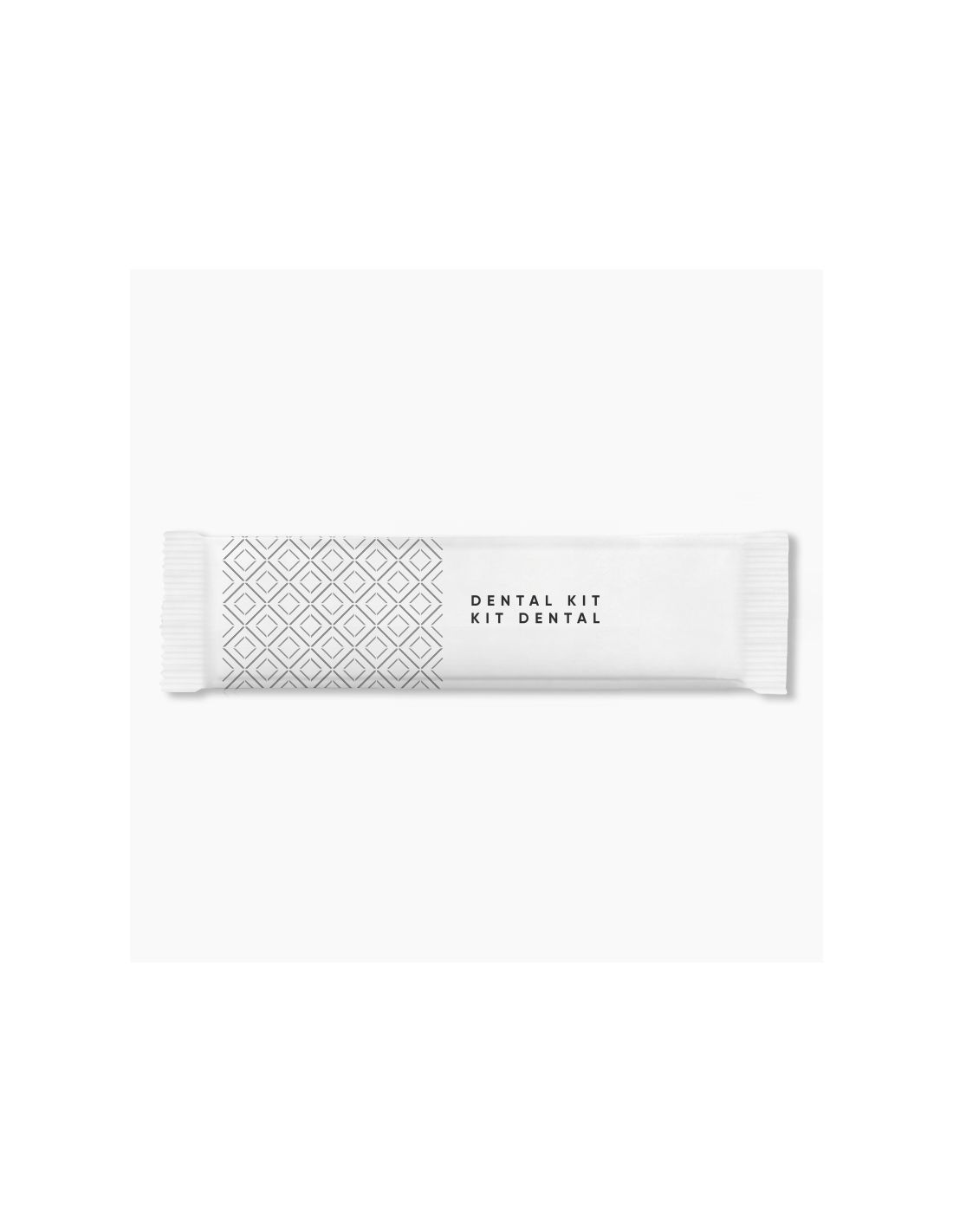 Kit dental formado por un sobre de pasta de dientes y un cepillo de dientes, ambos con un diseño urbano, fresco y moderno. Este kit resulta perfecto para ofrecer a los huéspedes dentro de las habitaciones de un apartamento, una casa rural o un hotel.