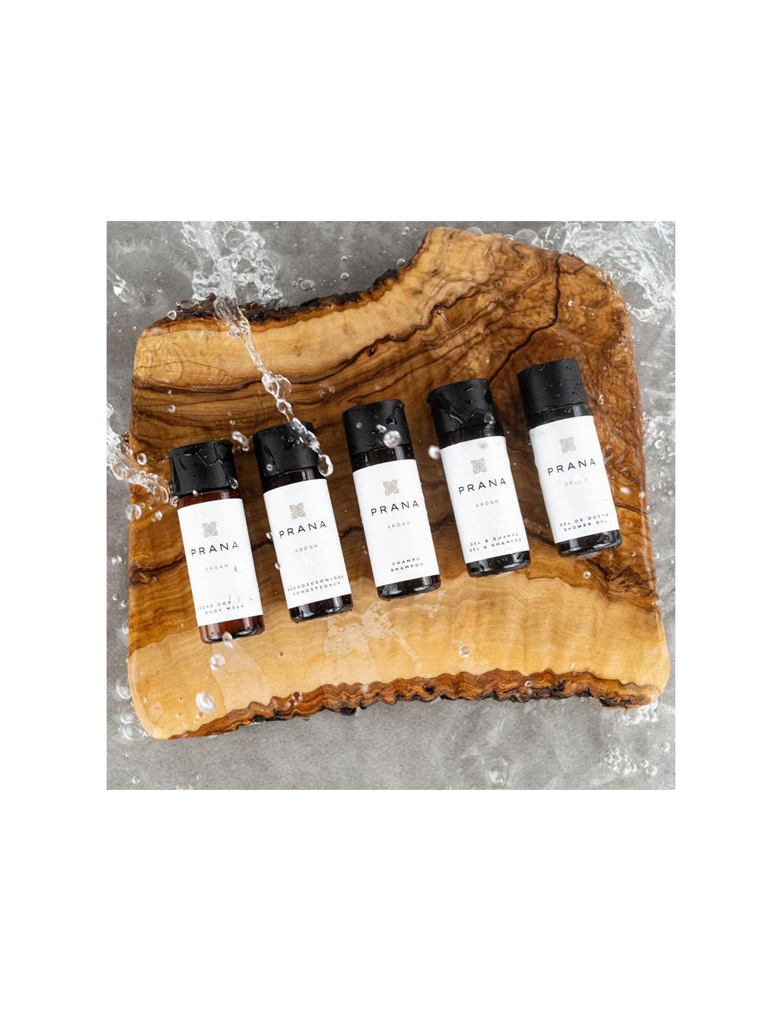 El champú Prana, con un delicado aroma a argán con toques de esencias orientales, contiene ingredientes naturales que lo hacen indicado para todo tipo de cabellos y especialmente recomendado para su uso diario.
