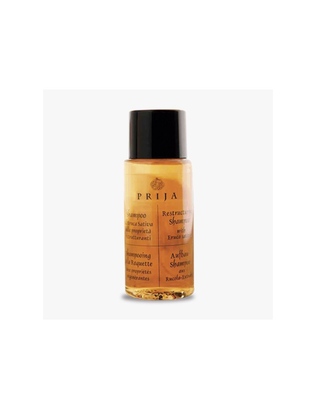 El champú fortificante con Eruca sativa ayuda a mantener el tallo del cabello suave, liso y resistente. El champú para hotel Prija ha sido especialmente preparadas para reducir las reacciones alérgicas en clientes con piel sensible.