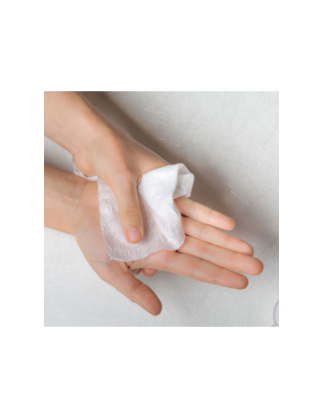 Sorprendente e innovador. Su funcionamiento se activa presionando en el centro de la cápsula, y después de esperar sólo 4 segundos, la toallita de fibra natural, totalmente precintada, absorbe la solución líquida incorporada en su interior, saliendo automáticamente a la superficie, estando lista para ser utilizada. Aportando una higiene garantizada