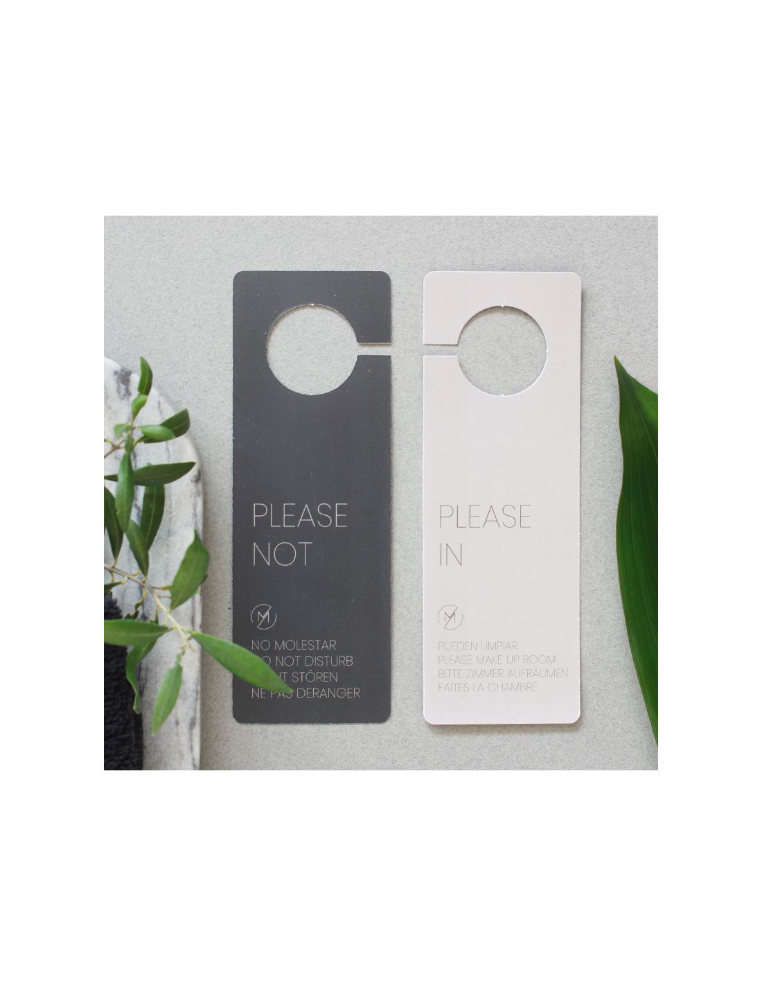 Pensados para que los huéspedes puedan colgarlos en el picaporte exterior de la puerta para que el personal no entre durante el horario de limpieza. Con lo cual, el cliente podrá descansar tranquilamente  sin que nadie le moleste o evitar que se toquen sus pertenencias personales si no lo desea.