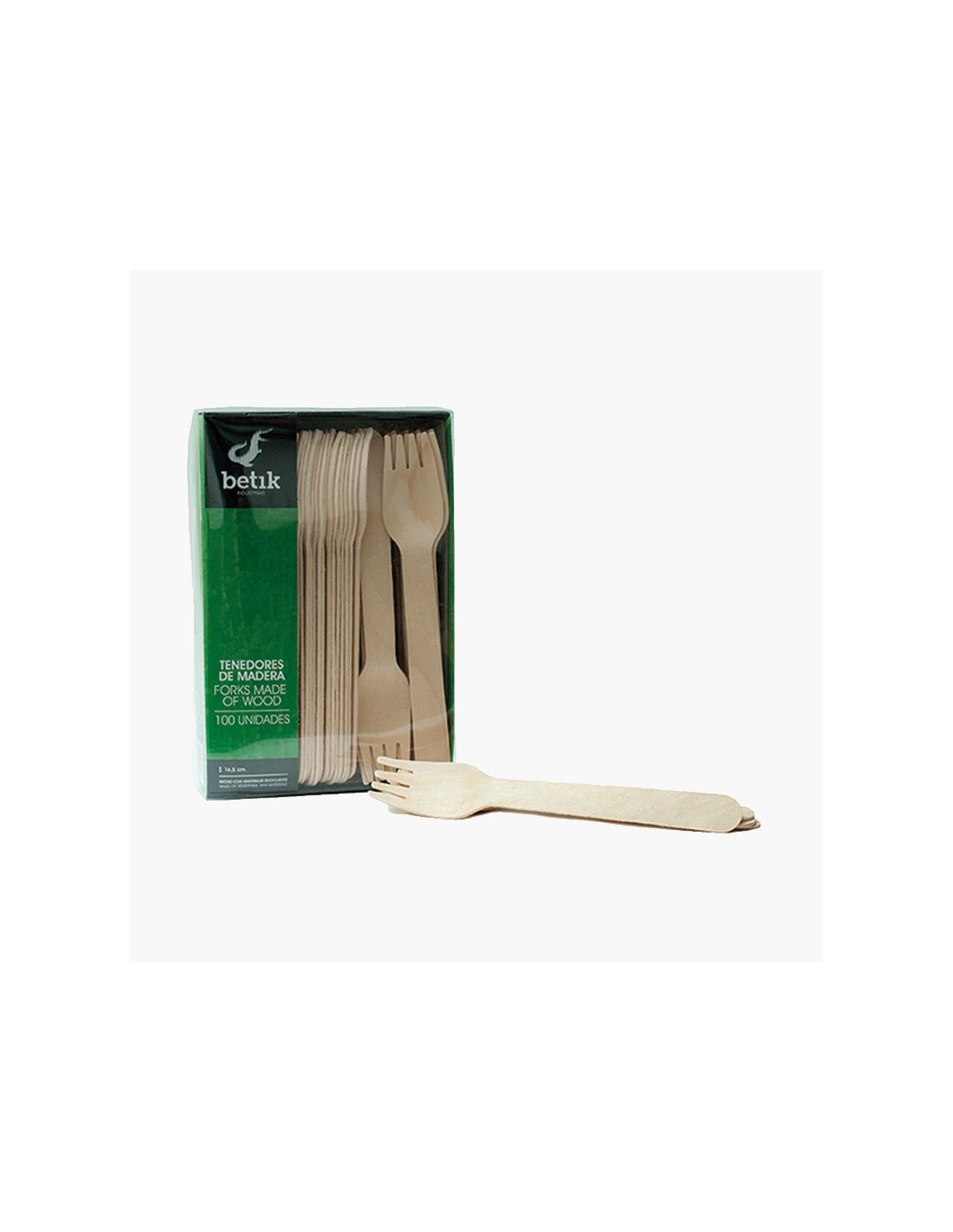 Tenedor de madera con una longitud de 16,5 cm y un espesor de 1,8 mm. Fabricados con madera 100% natural y sin añadir ningún tipo de producto tóxico en su fabricación.