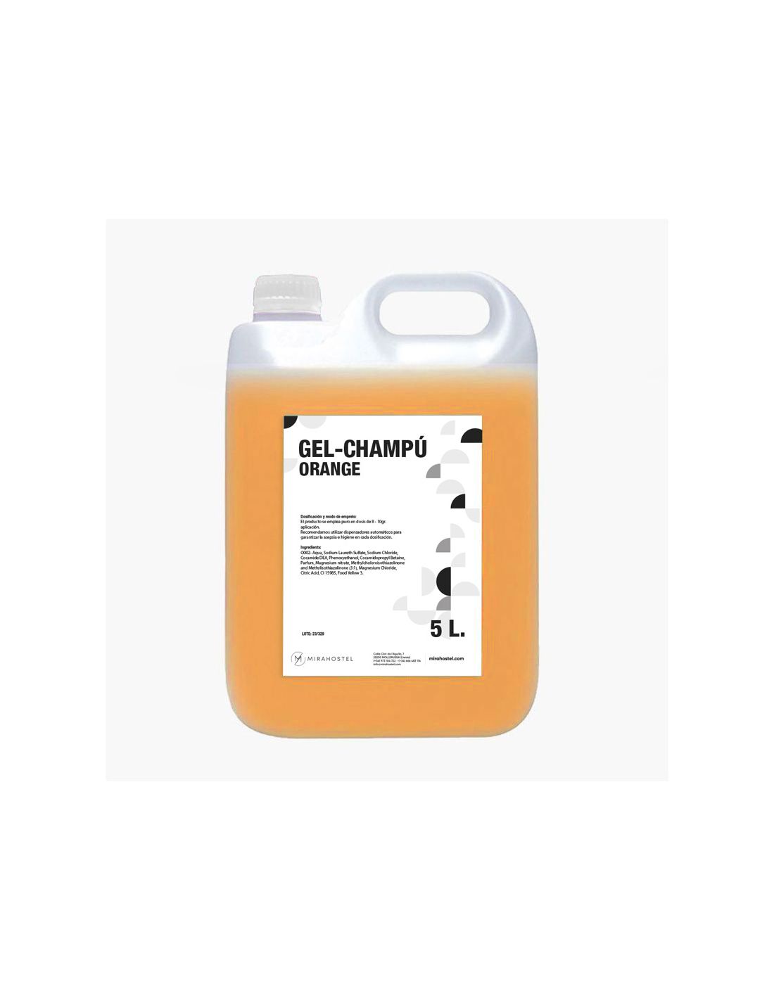 GARRAFA GEL - CHAMPÚ ORANGE NATURA – AMENITIES MIRAHOSTEL