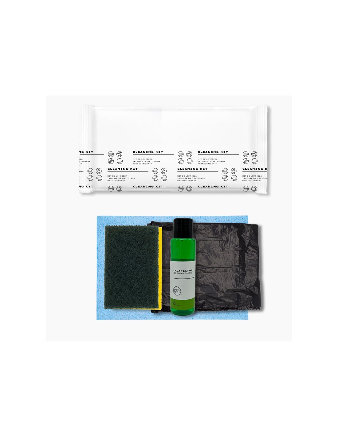 Kit limpieza apartamento y cocina: bayeta, salvauñas, lavavajillas y bolsa de basura - Amenities Mirahostel