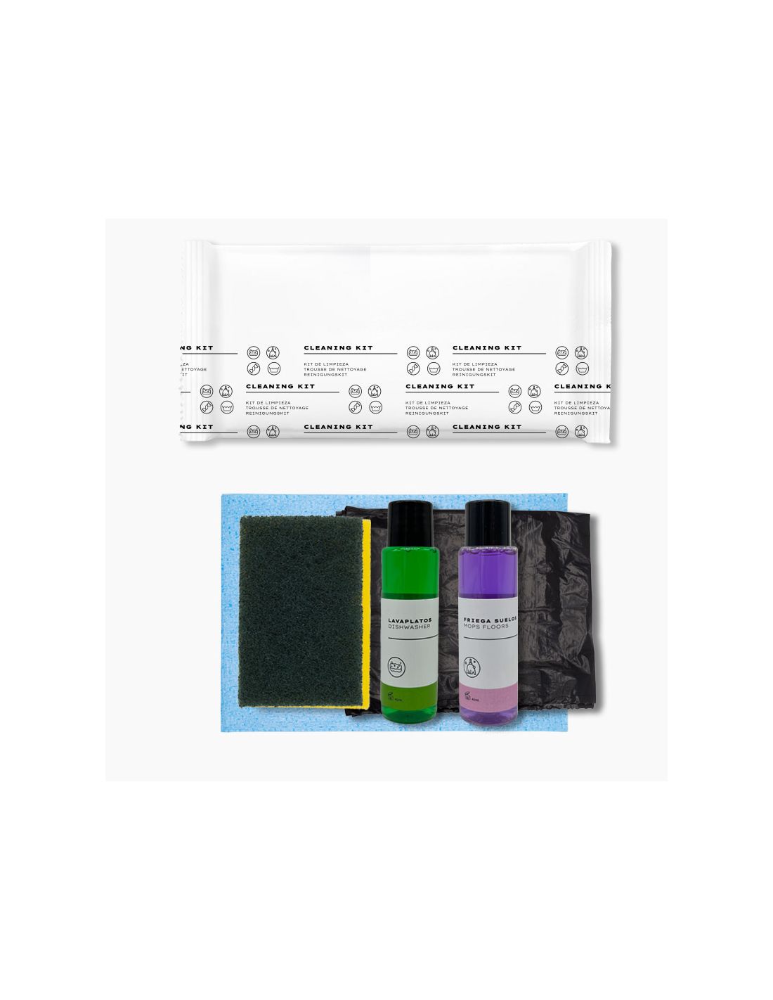 Kit de limpieza con todos los utensilios y productos necesarios para la cocina. Ideal para casas rurales, bungalows, apartamentos turísticos y apartahoteles.