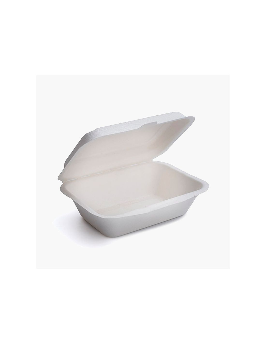 Envase fabricado con caña de azúcar. Completamente ecológico y 100% biodegrable y compostable, por lo que pueden ser desechados después de su uso. Los comercializamos en paquetes de 50 envases con capacidad para 700ml.