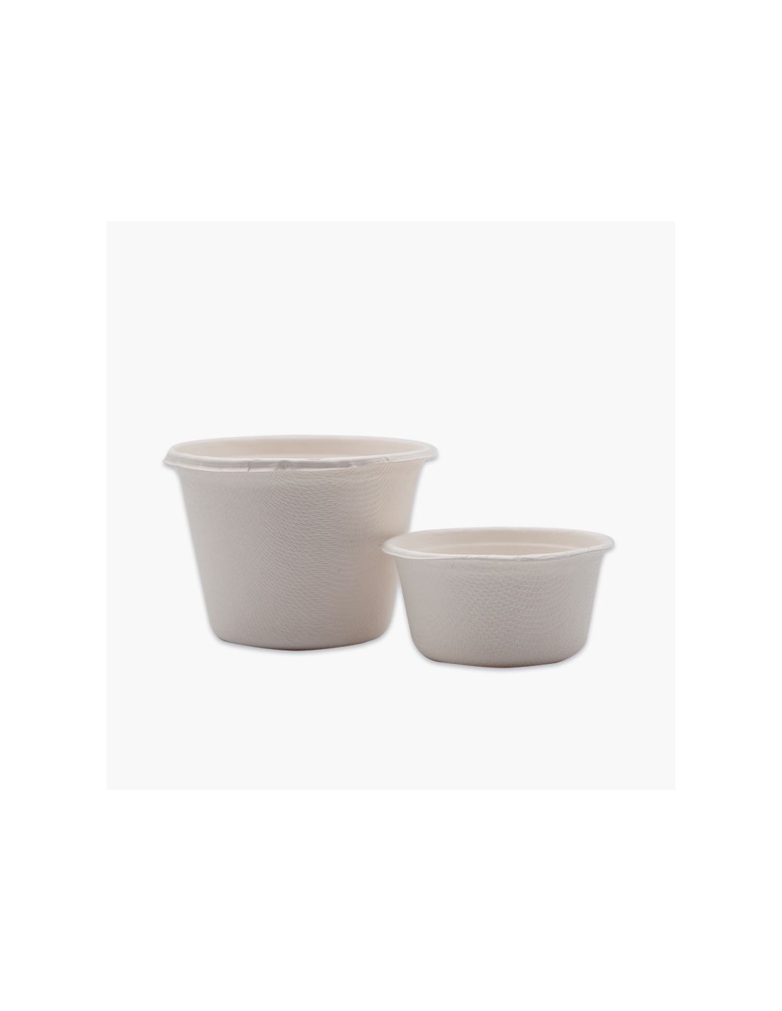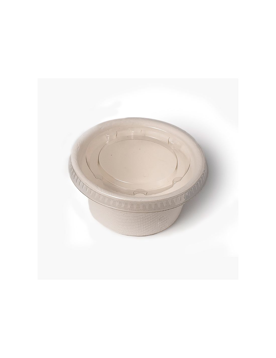 Tarrina de caña de azucar de capacidad 60ml o 120ml en color blanco natural. Elaborado con caña de azúcar material natural, reciclables, biodegradables y compostable. De esta forma, podrás tirarlos a la basura de la materia orgánica.