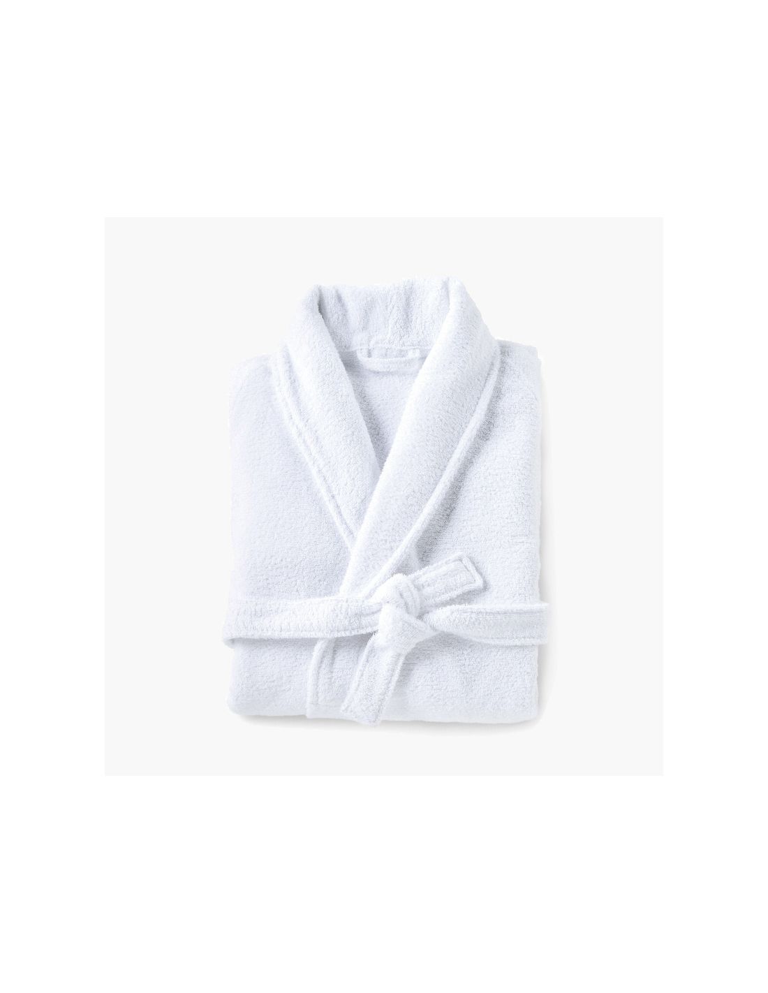 Albornoz de color blanco tipo smoking que proporcionan una gran sensación de bienestar a los huéspedes de su alojamiento. Especialmente pensados para las habitaciones de los hoteles, pero también puedes incluirlas en las habitaciones de tu apartamento, casa rural o Spa.